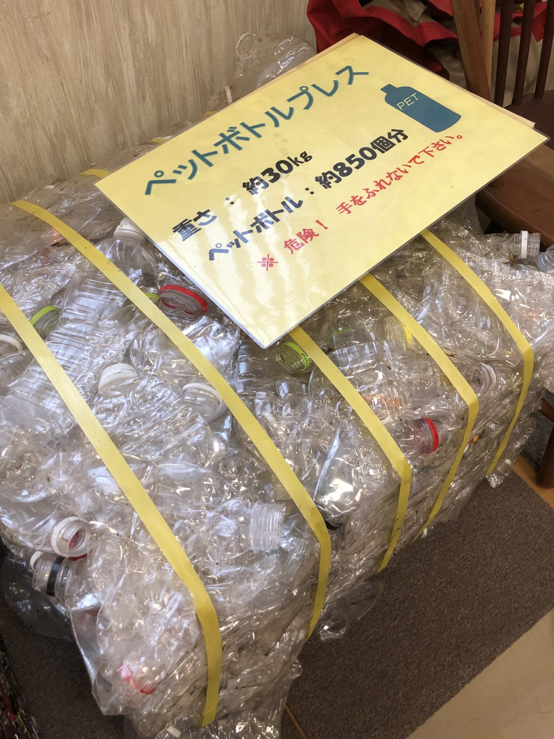アルミ、スチールをプレス形成、ペットボトル、プラスチック類を圧縮減容しリサイクル会社に引き渡します。